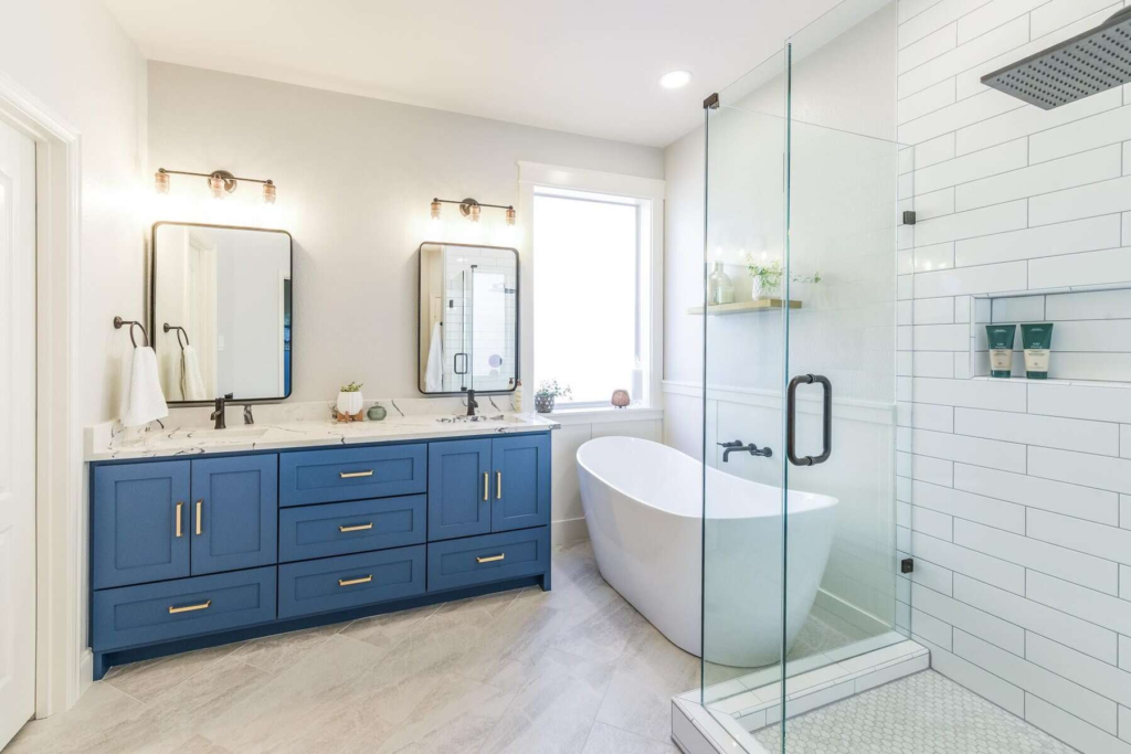 With good sealing and maybe a rainfall showerhead it becomes your personal spa moment. Clear glass keeps it open and lets the blue shine through. Showers suddenly feel way more exciting.