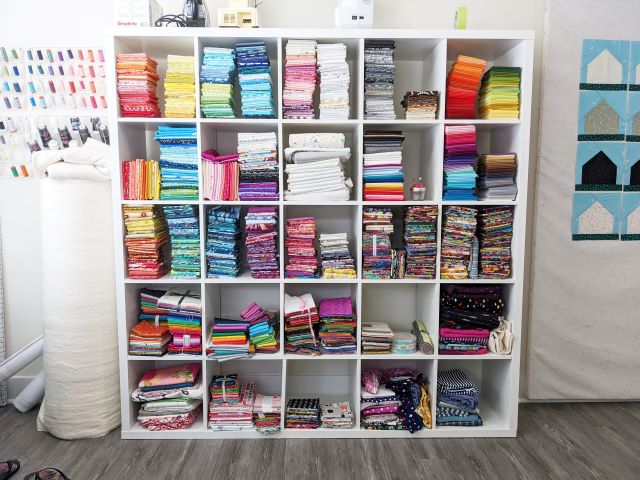 The practical benefits extend beyond aesthetics. When fabric is displayed openly, you’re more likely to use what you have rather than buying duplicates. The uniform folding technique required for cube storage keeps stacks neat and prevents the “avalanche” effect of traditional stacking. Add woven baskets to some cubes for storing scraps, patterns, or works-in-progress. This system grows with your collection—simply add more cube units as needed.