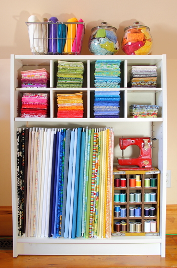 Corral fabric collections in stylish foldable bins that complement your decor. These fabric-covered cardboard or canvas containers slide easily onto shelves, into cubbies, or under tables, concealing clutter while adding pattern and texture to your space. Choose bins with handles for easy transport from storage to sewing machine, and select colors that coordinate with your room’s palette.