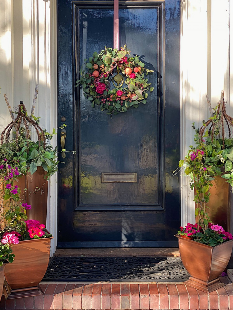 But paint is just the beginning. Add a beautiful wreath that changes with the seasons, upgrade your door hardware for an instant facelift, and make sure your house numbers are visible and stylish. A new doormat that actually says something (whether it’s “hello,” “welcome,” or something more sassy) adds personality. And if your door has glass panels, keep them clean so your gorgeous porch decor is visible from the street. Remember, your front door is the exclamation point on your porch design – make it count!