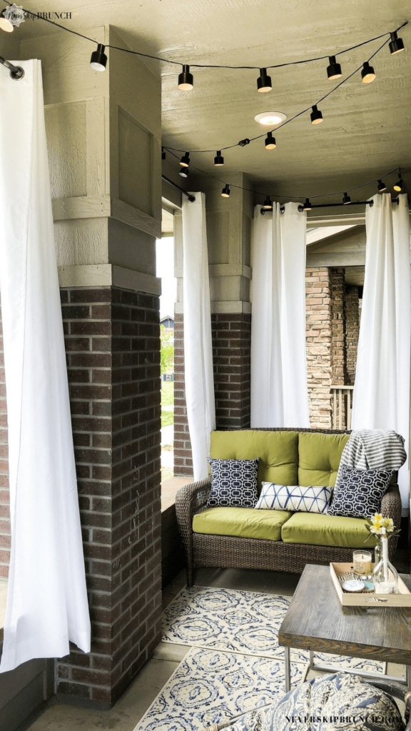 Here’s a trick that’ll make your porch feel like a luxury retreat: outdoor curtains. Yes, really! Hanging curtains on your porch adds instant elegance, provides some privacy, offers shade on hot days, and creates this dreamy, billowy aesthetic that’s straight out of a design magazine. They’re especially great for covered porches or areas between columns, and they can make even the most basic porch feel sophisticated and intentional.