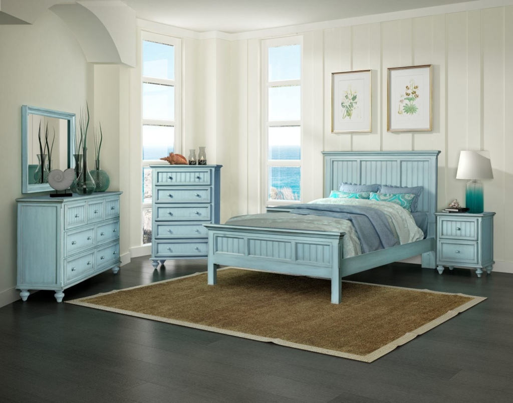 Bring the beach home with a coastal-inspired blue bedroom. Use varying shades of blue – from deep ocean to pale sky – paired with natural textures like jute, rattan, and weathered wood.