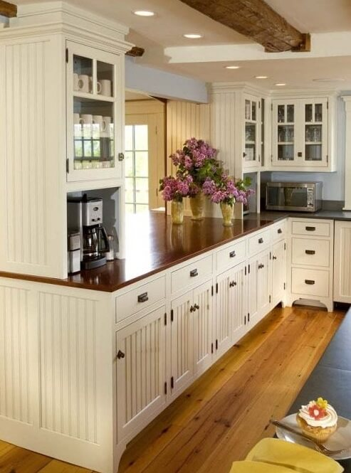 Paint them white for a classic look, or try sage green or navy for something more unexpected. The beadboard detail works on both upper and lower cabinets and pairs beautifully with simple hardware. It’s a subtle detail that makes a big impact.